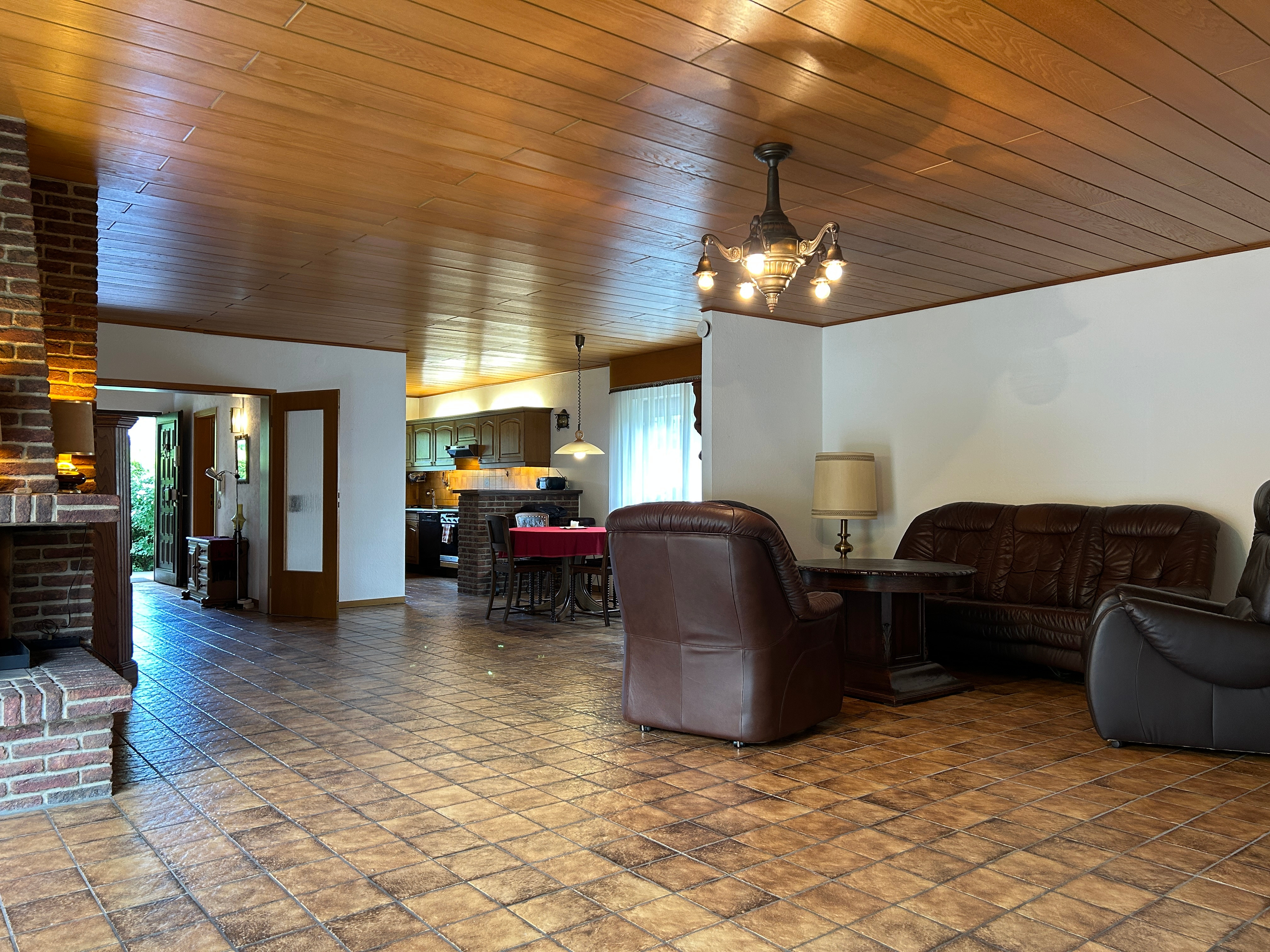 Durch den Dielenbereich gelangen Sie in den fantastischen Wohn- und Essbereich, der das Herzstück des Hauses bildet. Der Wohn- und Essbereich gehen nahtlos ineinander über und bieten einen hervorragenden Ausblick in den blickdichten und schön angelegten Garten – ein kleines Paradies für Familien. Die großzügige West-Terrasse lädt dazu ein, die Nachmittagssonne zu genießen.