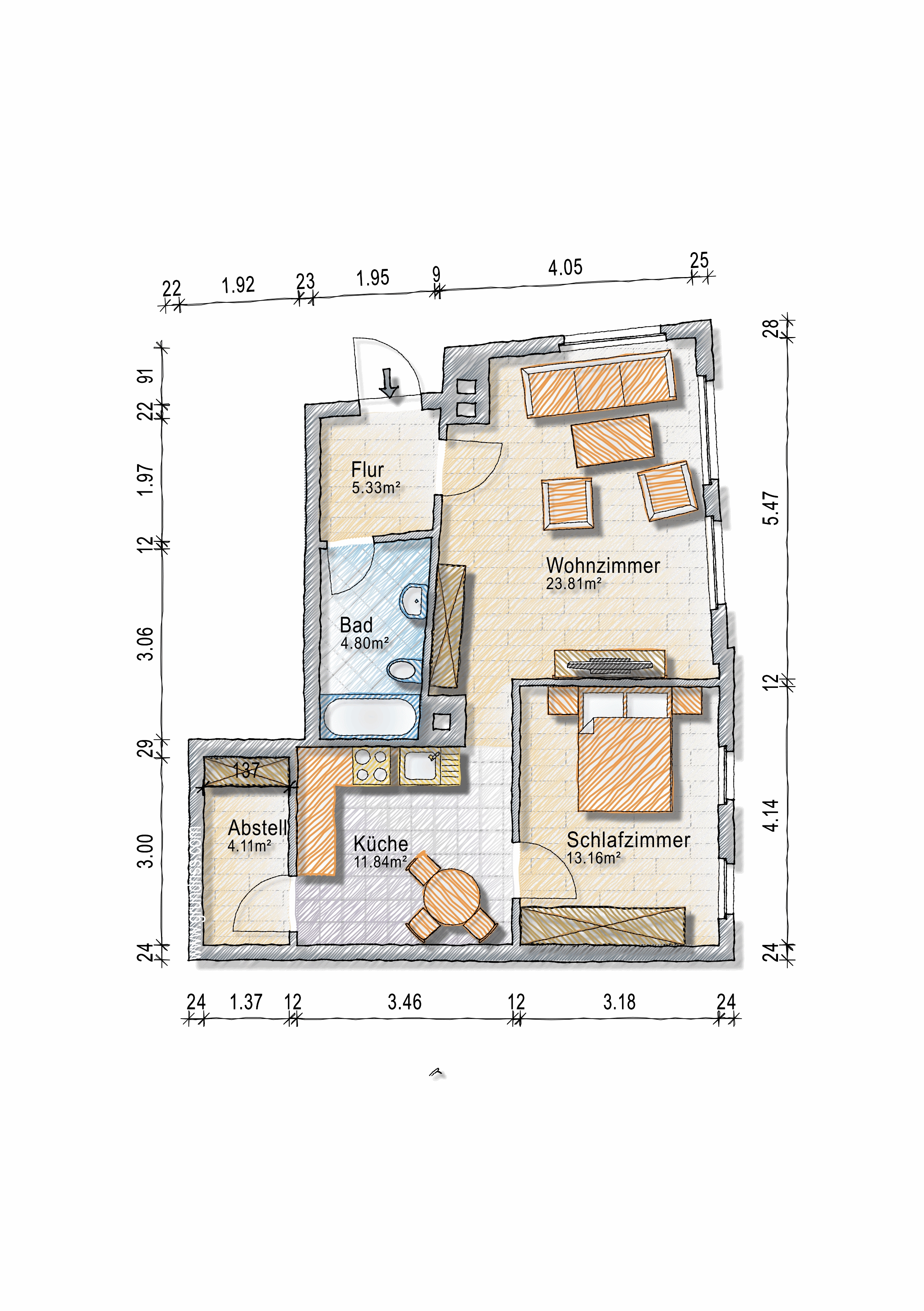 Von den Eigentümern wurde das gesamte Haus stets ordentlich gepflegt und instandgehalten, sodass Sie einen guten Zustand der Wohnung vorfinden.
