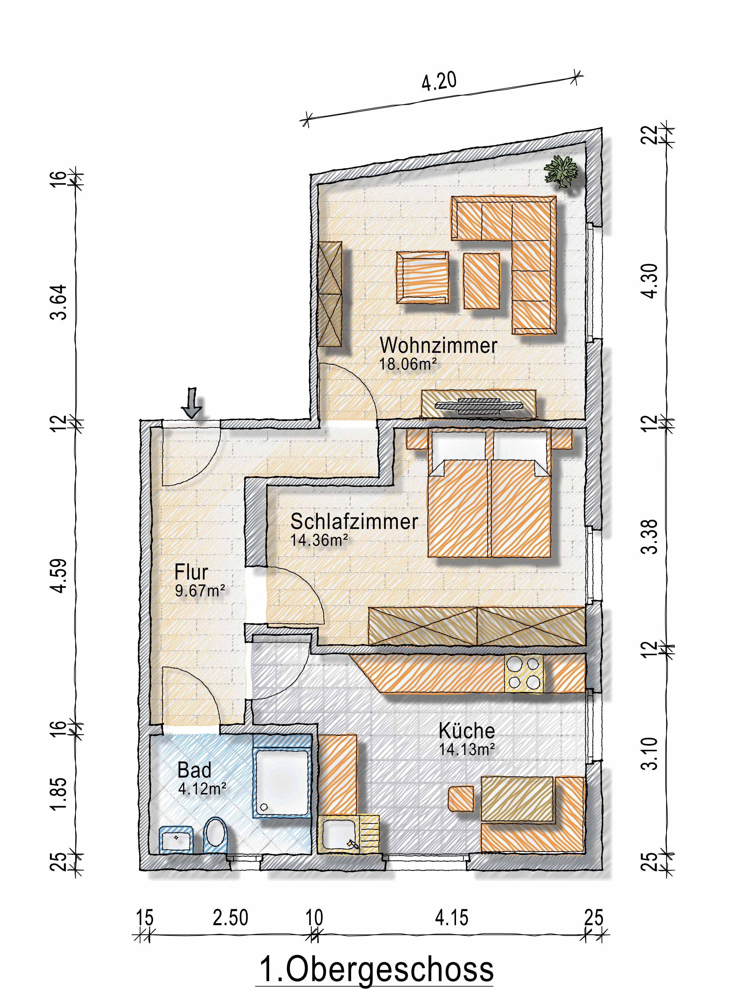 OG: 2-Zimmer-Wohnung mit ca. 60m² Wohnfl.